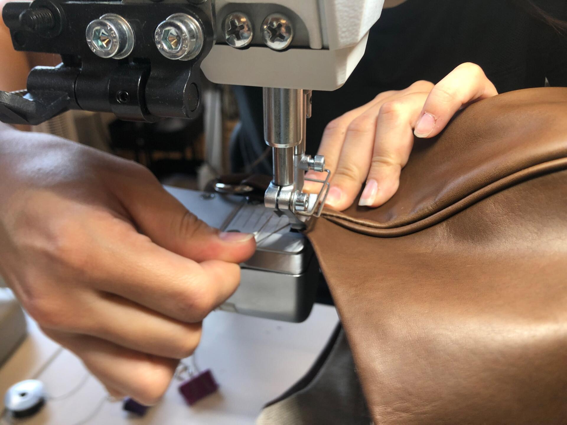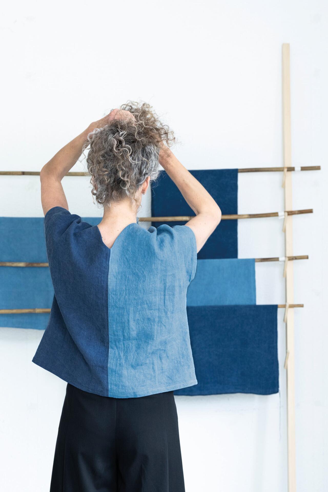 Das Atelier erstreckt sich über das obere Stockwerk; ein warmer Raum mit Holzboden und viel Tageslicht. Mal konzentriert, mal wuselig geht es zu und her, Nähmaschinen rattern, Stoffe liegen aus, Hände formen, justieren, verwerfen und beginnen neu. Ein Ort, an dem man sieht, wie Dinge entstehen und warum sie bleiben.