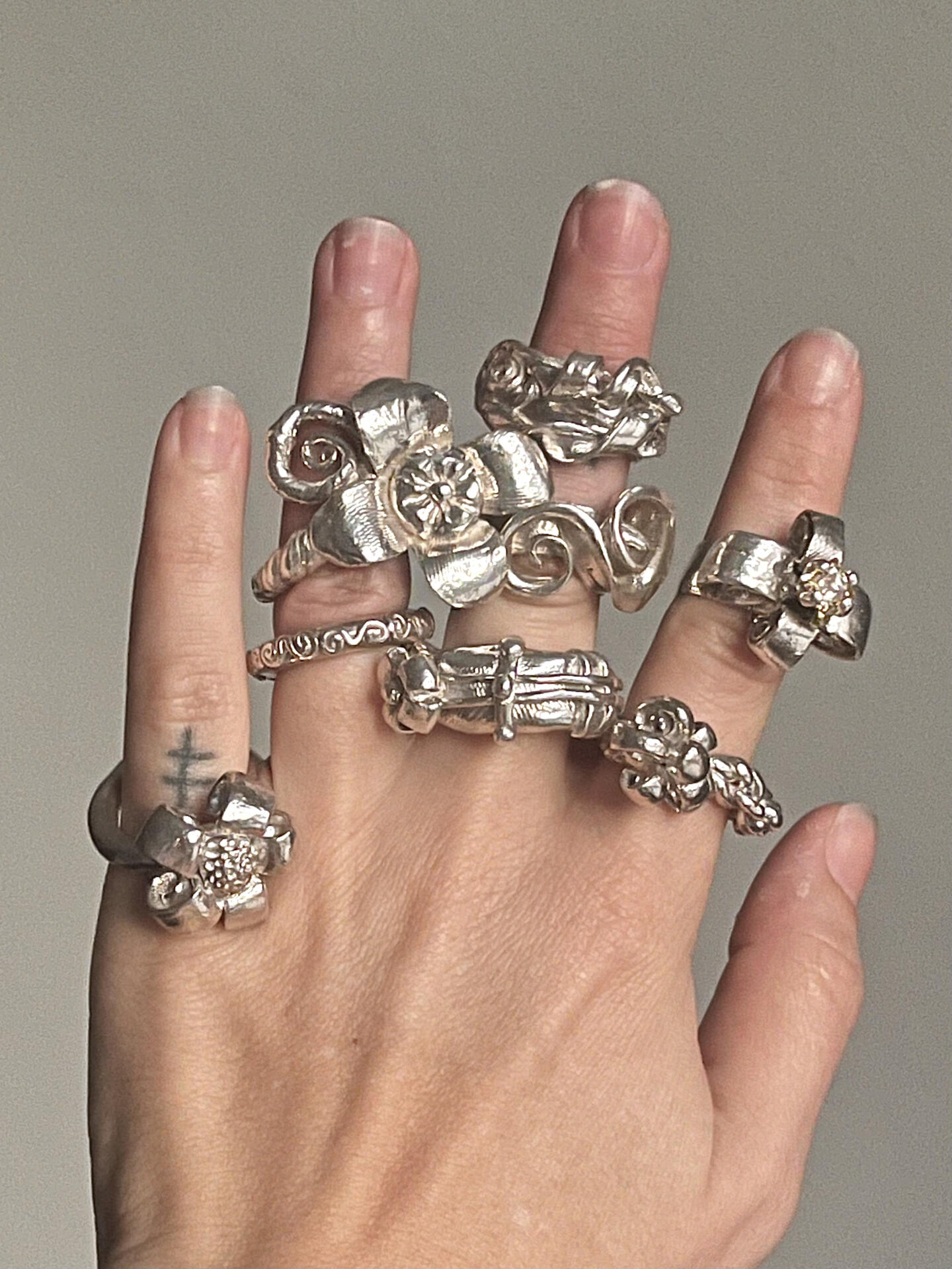 Als Autodidaktin entwickelt sie ihre Praxis durch Intuition, Tastsinn und Experimentieren. Sie modelliert ihre Stücke meist direkt in Wachs, wodurch die Formen organisch entstehen, bevor sie im Metallgussverfahren umgesetzt werden.