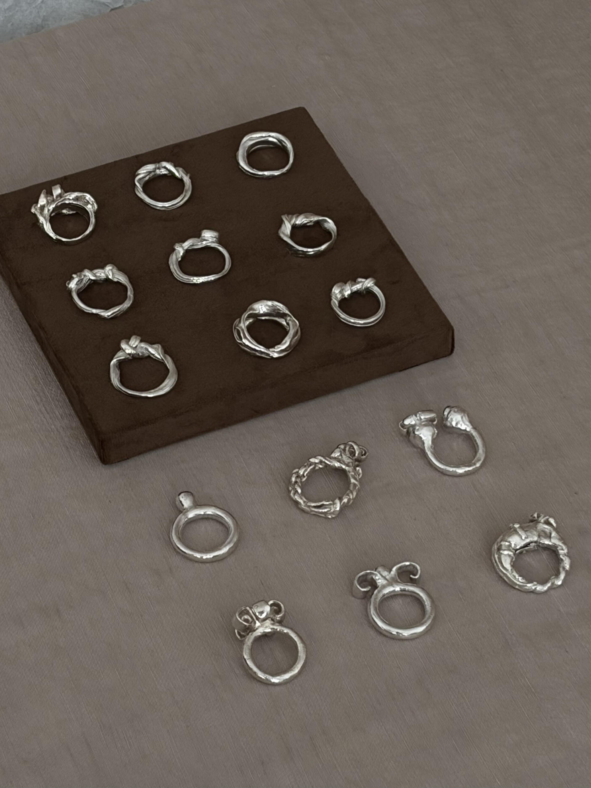 Alle Schmuckstücke werden in der Schweiz von Hand gefertigt, in kleinen Serien oder als Unikate. Dieser Ansatz steht für Langlebigkeit und Zirkularität – Schmuck, der dafür gemacht ist, getragen, repariert und weitergegeben zu werden.